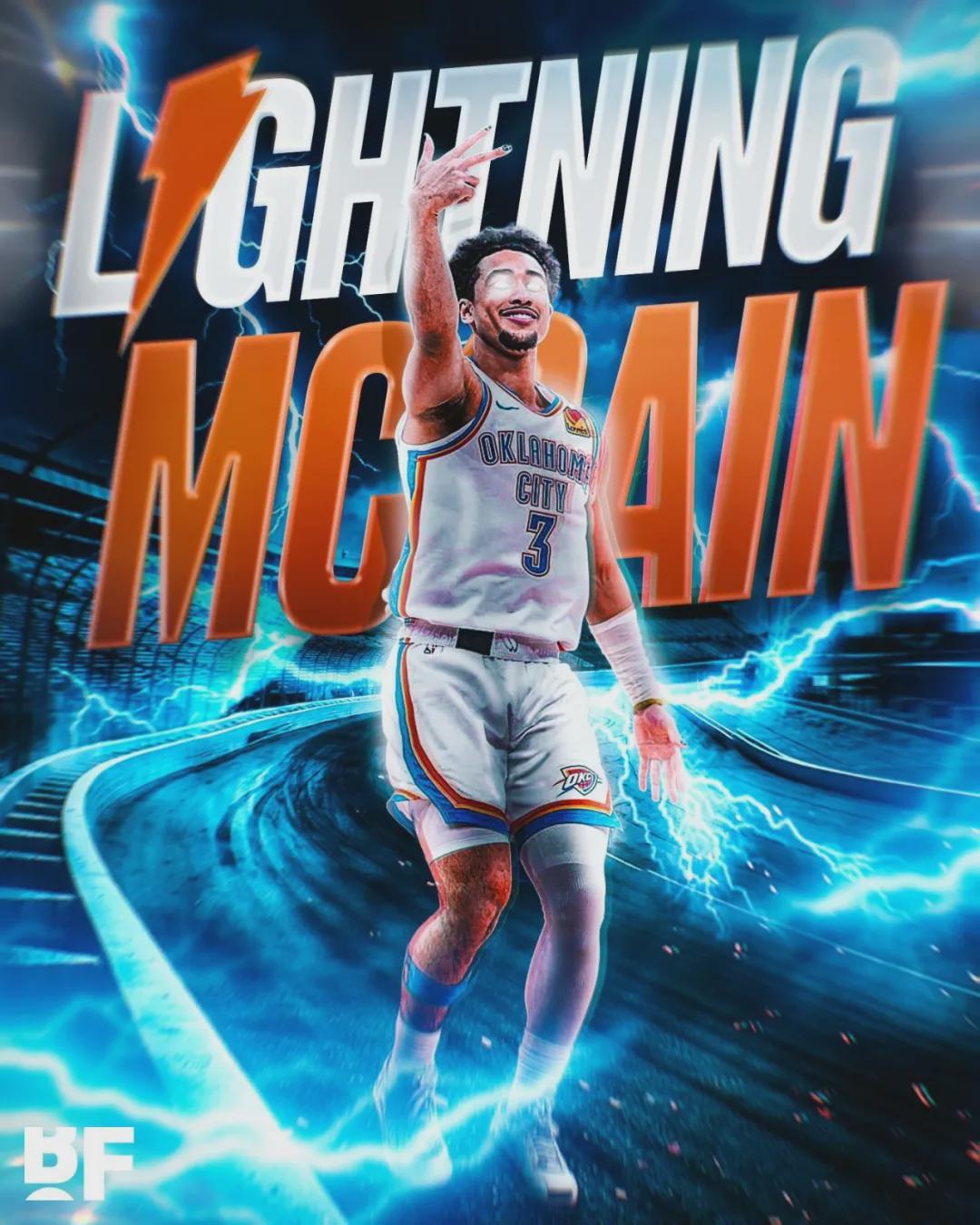 雷霆新援贾里德-麦凯恩(魔仙哥)替补出战25分钟,投篮15中8,三分9中4,得到20分3篮板1助攻2抢断2失误。自从加盟雷霆之后,麦凯恩3次替补砍下20+,同期联盟替补球员第二多,仅次于凯尔特人后卫普里查德(6次)。